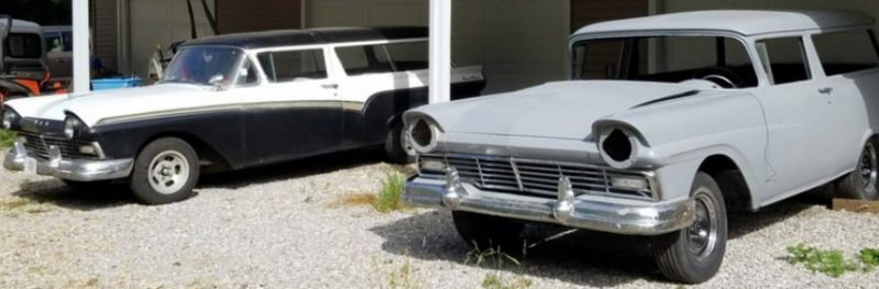 1957 Ford custom ranch wagon restoration project. New reproduction floors front to back. New Rockers and low quarters installed, stripped media blasted then sealed primed, frame off restored chassis, 9 inch rear end, new brakes, bushings, all ne from suspension, ball joints, bushings, all new front suspension, ball joints, bushings aftermarket front disc brakes and hoses, fuel lines ran, new master cylinder, factory steering and pedals, factory dash and heater system, restored or new radiator, new windshield and gasket, 15 inch wheels lots of other parts